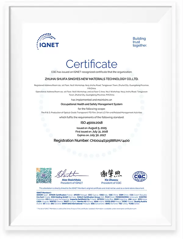 Since its establishment in 2010, Shuifa Singyes New Materials has prospectively entered the field of optical film materials. The company has always adhered to independent innovation and continuously broken through core technologies. With its strong research and development capabilities and industrialization capabilities, it has successively obtained qualifications and certifications such as High-tech Enterprise (National Level), China's Specialised, Refined, Distinctive and Innovative "Little Giant" Enterprise, Guangdong Province Specialized & Sophisticated SME, Guangdong Province Innovative SME, Guangdong Province Intellectual Property Demonstration Enterprise, Guangdong Province Green Factory, Top 50 Enterprises with Strong Patent Strength in Zhuhai High-tech Zone, Zhuhai Intellectual Property Advantage Enterprise, and Zhuhai Intellectual Property Protection Key Enterprise.