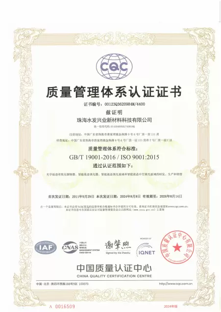 Zhuhai Shuifa Singyes New Materials Technology Co., Ltd. rigorously standardizes its management across quality, environmental, occupational health and safety, and social responsibility domains. Through years of dedicated effort and continuous improvement, the company has achieved full compliance with ISO 14001 Environmental Management System, ISO 9001 Quality Management System, ISO 45001 Occupational Health and Safety Management System, IATF 16949 Automotive Quality Management System certification, Enterprise Intellectual Property Management System certification, and six additional voluntary industrial product certifications. Concurrently, Our company regularly conducts energy conservation awareness campaigns and technical training sessions, embedding principles of energy efficiency, consumption reduction, and clean production into every aspect of manufacturing and office operations.