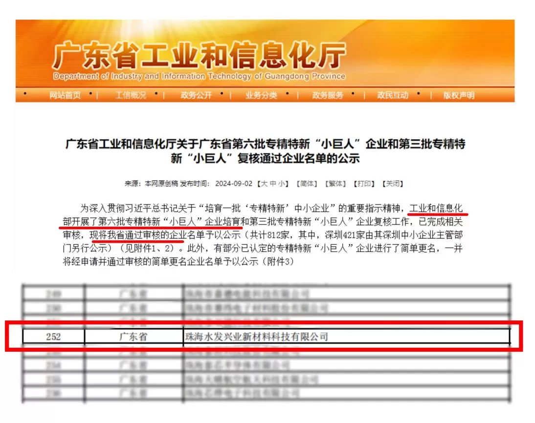 National-level Specialized, Refined, Distinctive, and Innovative ‘Little Giant’ enterprises occupy the pinnacle of the Ministry of Industry and Information Technology's tiered cultivation system for high-quality SMEs. On September 6, after rigorous screening, Zhuhai Shuifa Singyes New Materials Technology Co., Ltd. stood out among numerous outstanding competitors and was successfully recognized as a National Specialized, Refined, Distinctive, and Innovative ‘Little Giant’ Enterprise. This designation officially acknowledges it as a leading enterprise positioned in core industrial foundation sectors and critical links of industrial chains, characterized by its focus on niche markets, strong innovation capabilities, high market share, mastery of key core technologies, and superior quality and efficiency.